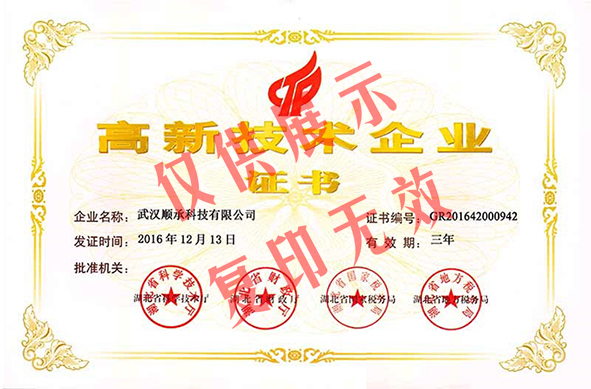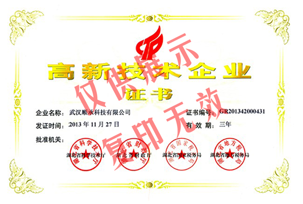 按湖北省科学技术厅《关于公示湖北省2016 年第一批高新技术企业备案的复函》(国科火字[2016] 84 号),我司顺利通过高新技术企业认定。
