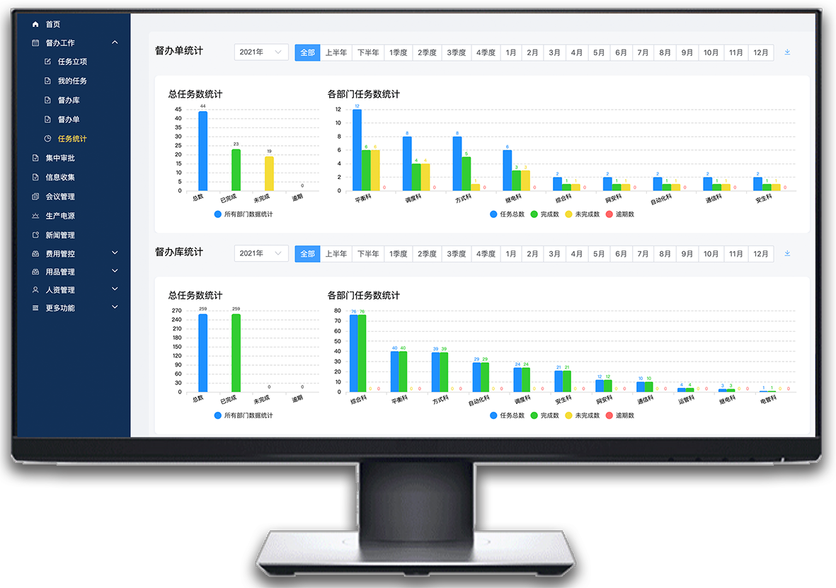 调度督办工作改进模块实现功能:督办库建立;督办工作横向和纵向流程;各类督办报表生成;督办情况统计;督办工作评价;督办工作提醒;总结素材生成。